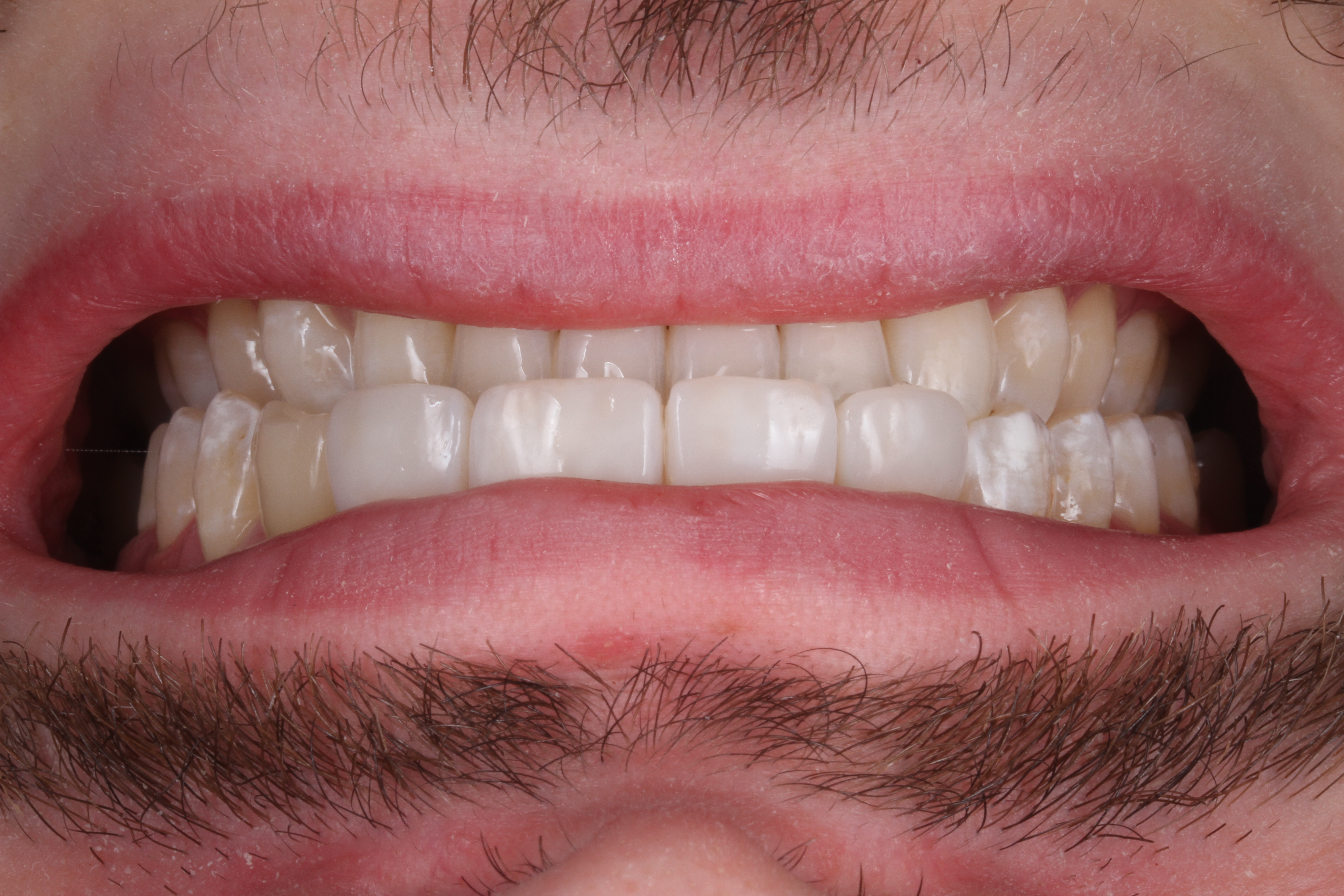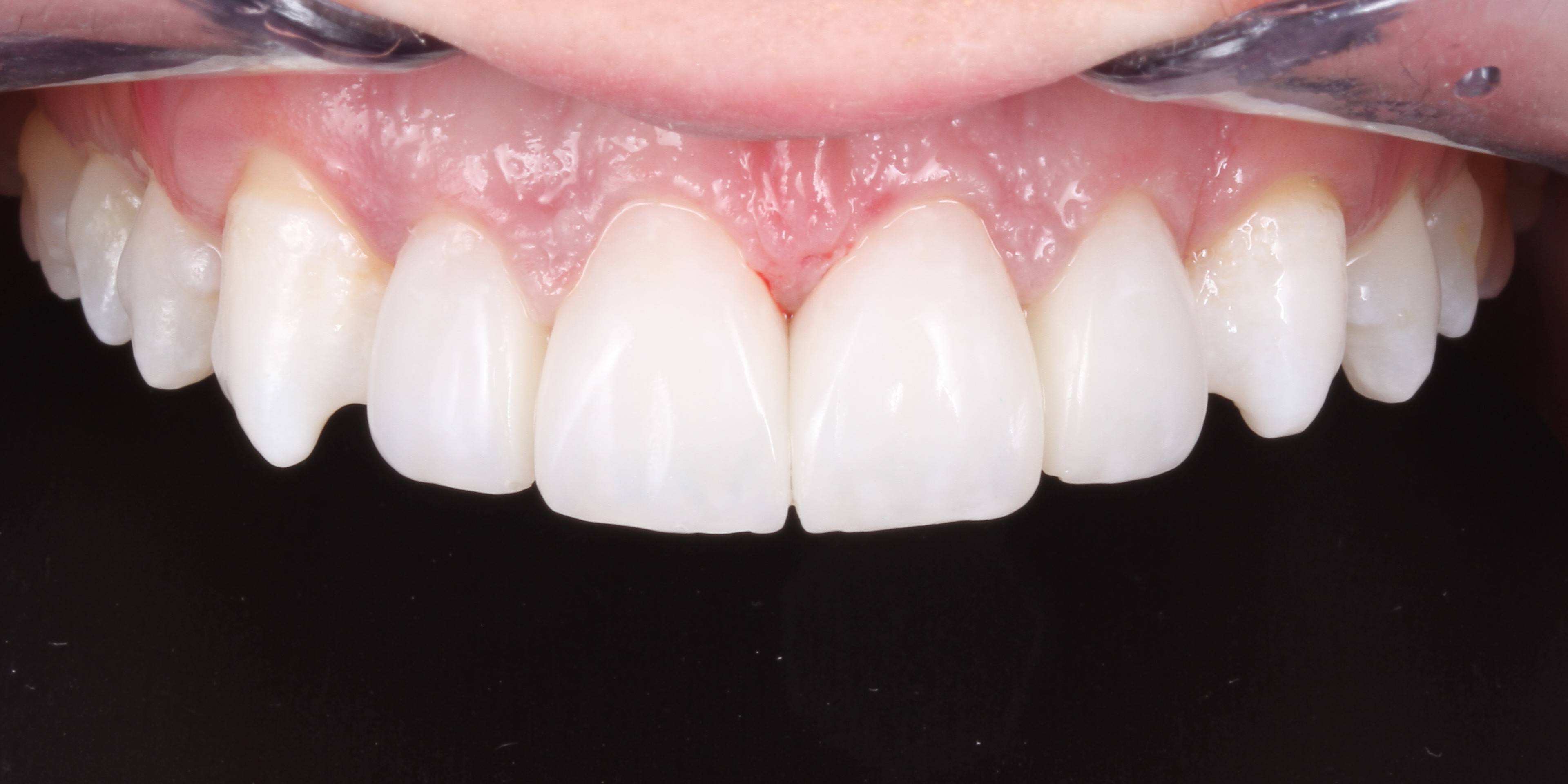 Proběhlo bělení zubů a rekonstrukce předních zubů fotokompozitními výplněmi